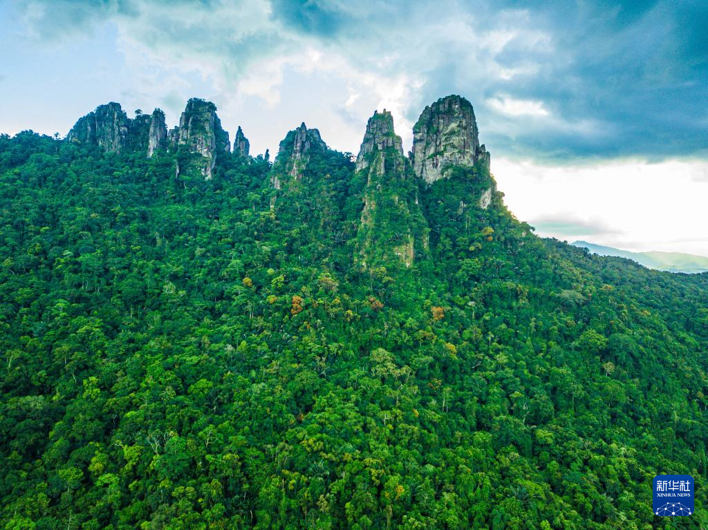 在海南保亭拍摄的七仙岭及热带雨林景色(无人机照片,7月17日摄)。新华社记者 蒲晓旭 摄