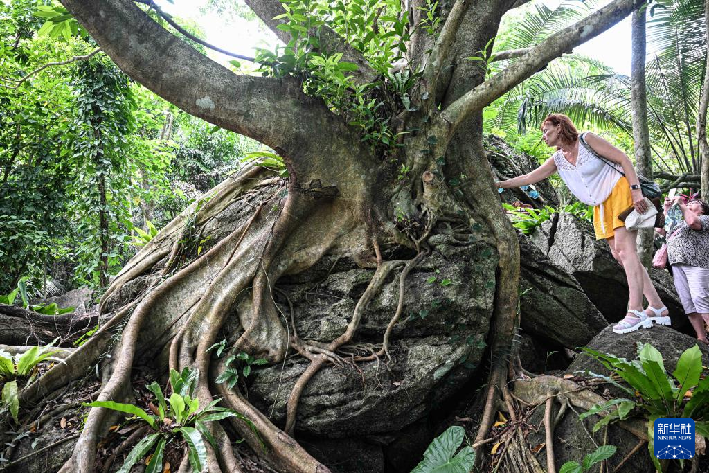 外国游客在海南保亭呀诺达雨林文化旅游区游玩(5月20日摄)。呀诺达雨林文化旅游区是保亭打造“国家全域旅游示范区”的重要载体。新华社记者 蒲晓旭 摄