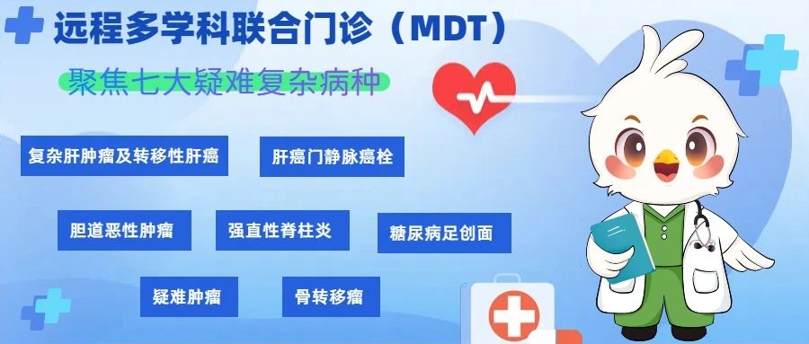 据介绍,多学科联合门诊(MDT)是指由来自外科、内科、影像科、病理科等不同专业的资深医疗专家组成团队,共同为病情复杂的患者进行精准诊断、制定个性化治疗方案和提供全方位护理的创新诊疗模式。本次远程MDT门诊主要服务于复杂肝肿瘤及转移性肝癌、肝癌门静脉癌栓、胆道恶性肿瘤、强直性脊柱炎、糖尿病足创面、疑难肿瘤、骨转移瘤这七类诊断复杂、治疗难度高的疾病患者。