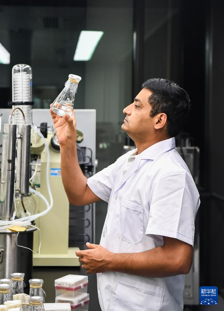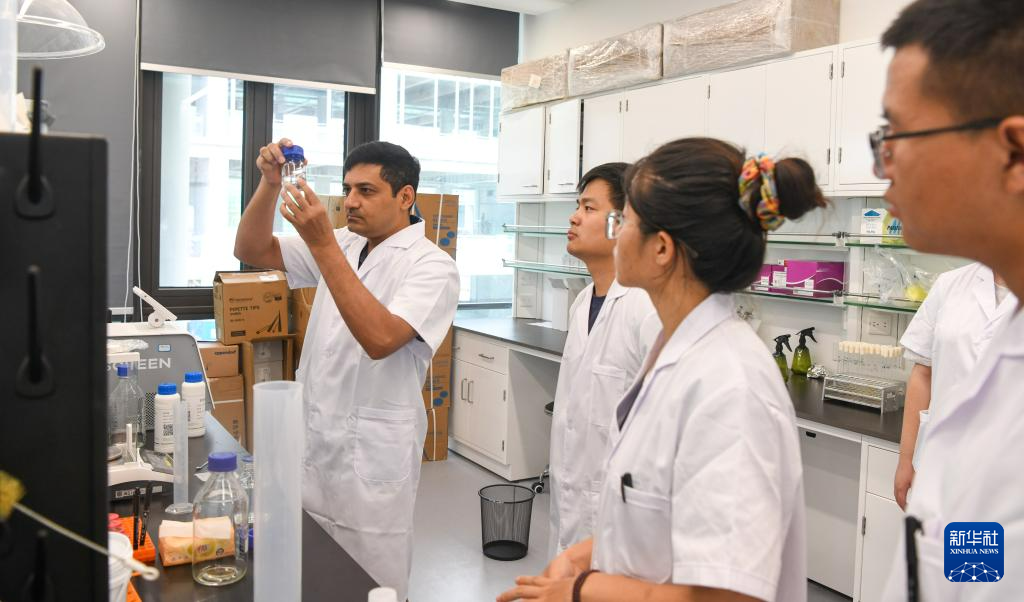 7月29日,瓦西姆·拉扎在中国热带农业科学院热带作物生物育种全国重点实验室。新华社记者 杨冠宇 摄