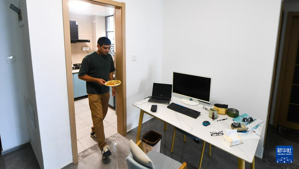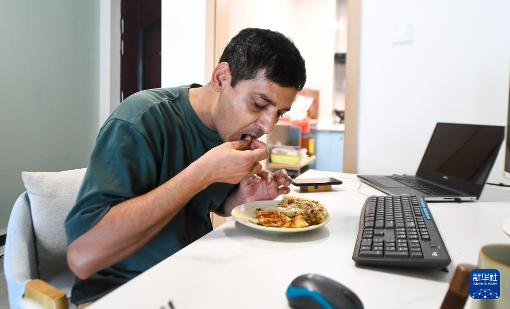 7月29日,瓦西姆·拉扎在公寓内用餐。新华社记者 杨冠宇 摄