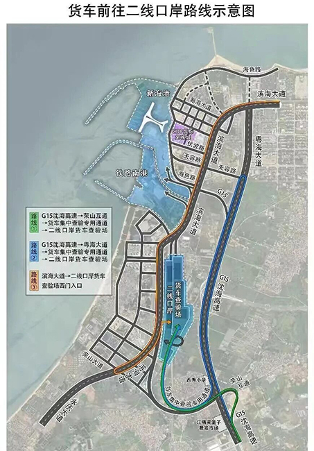 自9月15日起,新海港及粤海铁路南港“二线口岸”(货运)集中查验场(简称“集中查验场”)为经以上两轮渡港口出岛货运车辆的统一出岛通道。