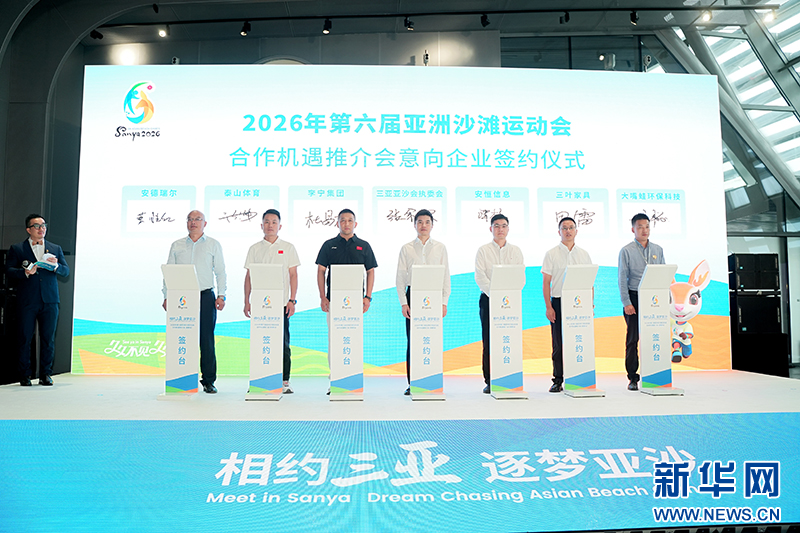 会上,李宁(中国)体育用品有限公司、杭州安恒信息技术股份有限公司、山东泰山体育器材有限公司、重庆市三叶家具有限责任公司、武汉安德瑞尔体育产业有限公司、四川大嘴蛙环保科技有限公司等6家企业与三亚亚沙会执委会共同签署了合作意向。