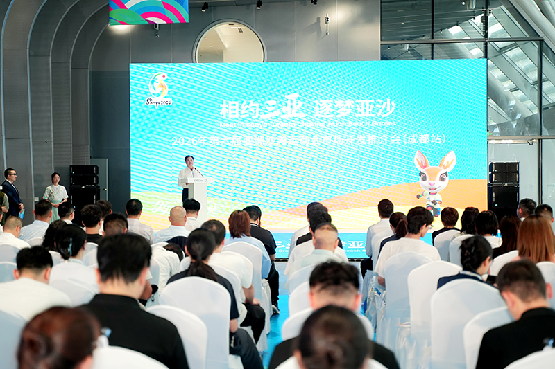9月26日下午,“相约三亚 逐梦亚沙”2026年第六届亚洲沙滩运动会合作机遇推介会(成都站)成功举行。三亚亚沙会执委会、成都世运会执委会、知名企业代表以及主流媒体等约60位嘉宾参与。