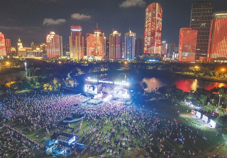 10月1日晚,由海口市旅游和文化广电体育局主办的“夸下海口”草坪音乐会在海口万绿园精彩上演。文/海南日报全媒体记者 习霁鸿 见习记者 刘响 图/海南日报全媒体记者 李天平