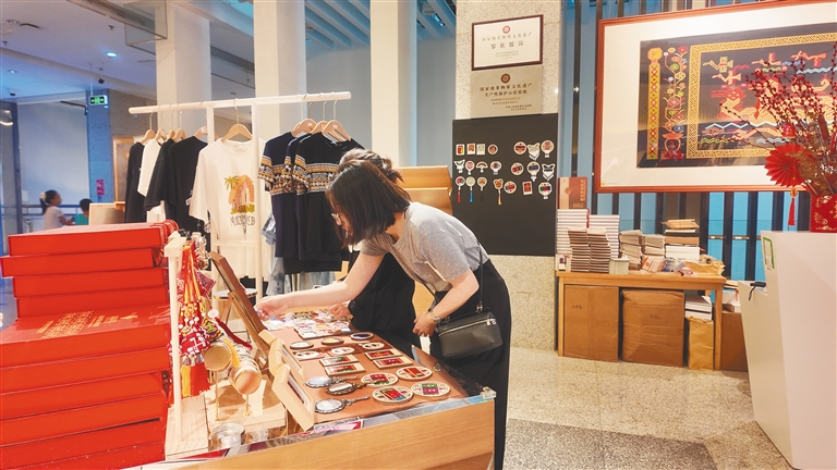 10月4日,游客在海南省博物馆选购文创产品。海南日报全媒体记者 刘晓惠 摄