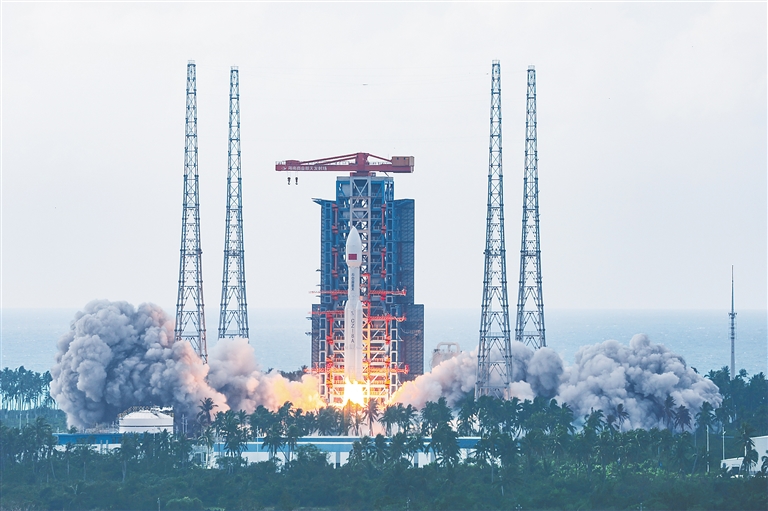 海南积极发挥地理纬度低、运输便利等独特优势,以商业航天发射场为牵引,大力发展商业航天产业。图为日前我国在海南商业航天发射场使用长征八号甲运载火箭,成功将卫星互联网低轨12组卫星发射升空。新华社记者 张丽芸 摄