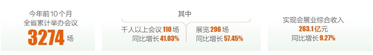 统计数字显示,今年前10个月,全省累计举办会议3274场,其中千人以上会议110场,同比增长41.03%;展览296场,同比增长57.45%;实现会展业综合收入263.1亿元,同比增长9.27%。一大批会展活动陆续登场、亮点纷呈:多场国际会议落地海南,吸引全世界关注;展演赛融合发展,展会活动吸引力持续提升;经贸会展成效显著,促进海南经贸投资增长;专业展会品质高,助力海南产业升级。