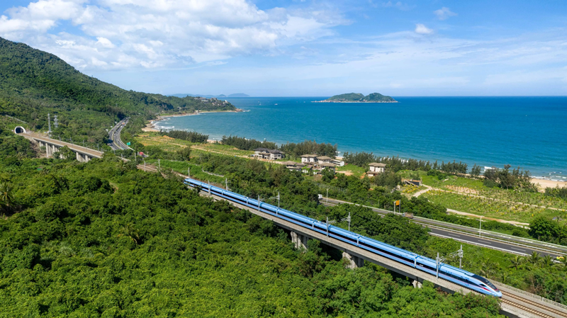 随着“交通+旅游”模式深入推进,海南铁路不断拓展服务内涵,其中最具代表性的就是刚满“周岁”的三乐旅游铁路。这条线路串联西岛、天涯海角、大小洞天等重点景区与园区,真正实现“到站即入景区、入园”。同时创新推出“凤舞九天”“天涯海角”“回首之约”等主题列车,其外观融入蓝天、海浪、三角梅等海南特色元素,车厢内配备自助咖啡机、奶茶机、啤酒机、AI打卡机及无线充电设备等智能便民设施。
